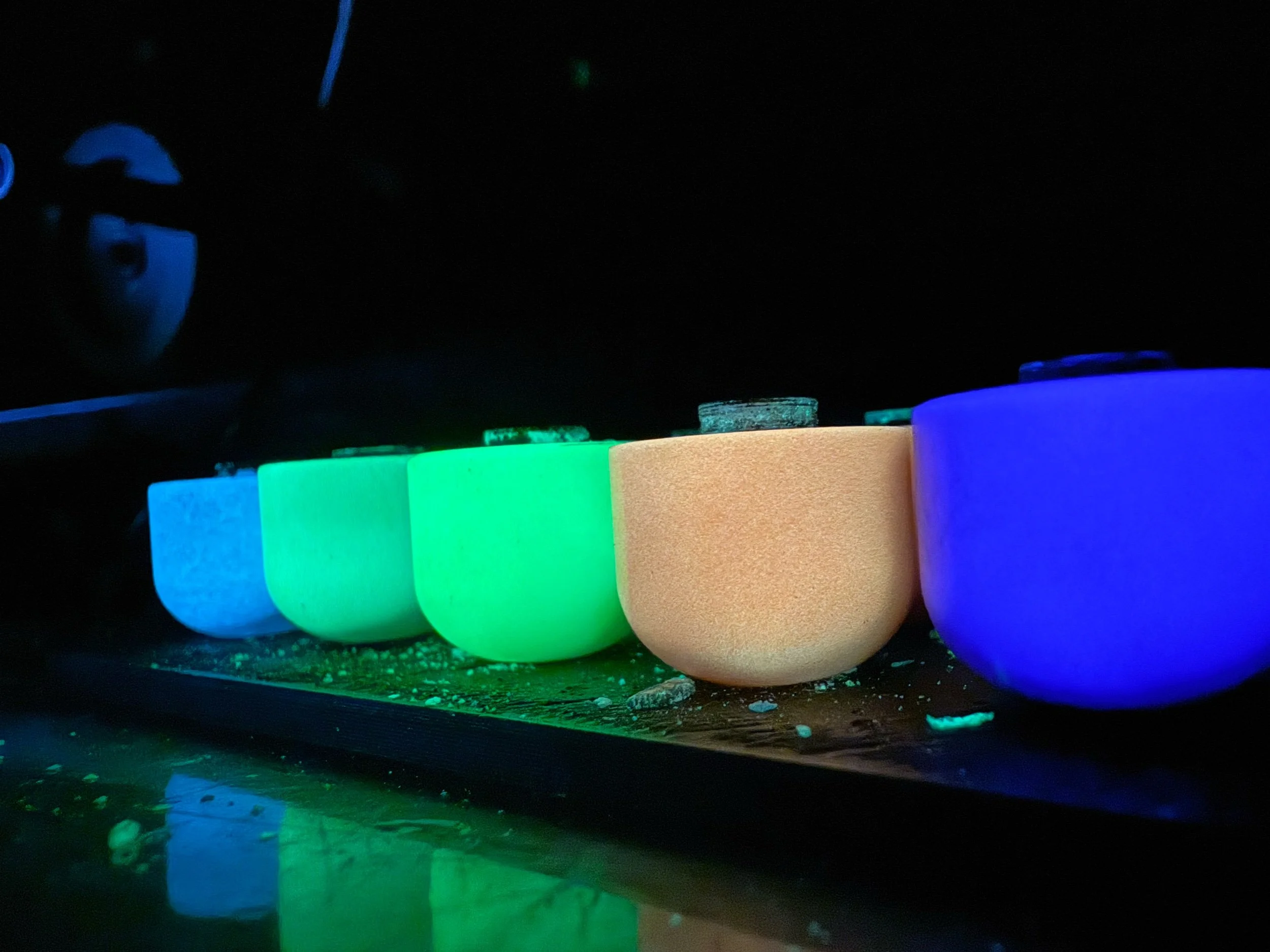 Image 1 of 2 Image 2 of 2 Bean half, turbo glow $40.00 Color: Amazonite (blue) Orange Yellow Green Amethyst (purple) Quantity: Add To Cart Added!